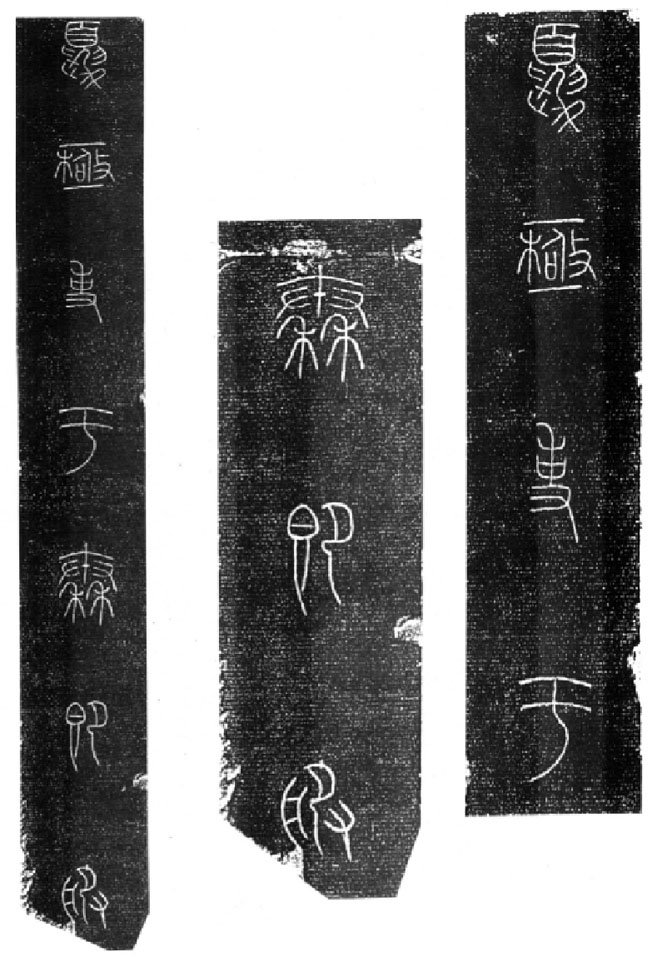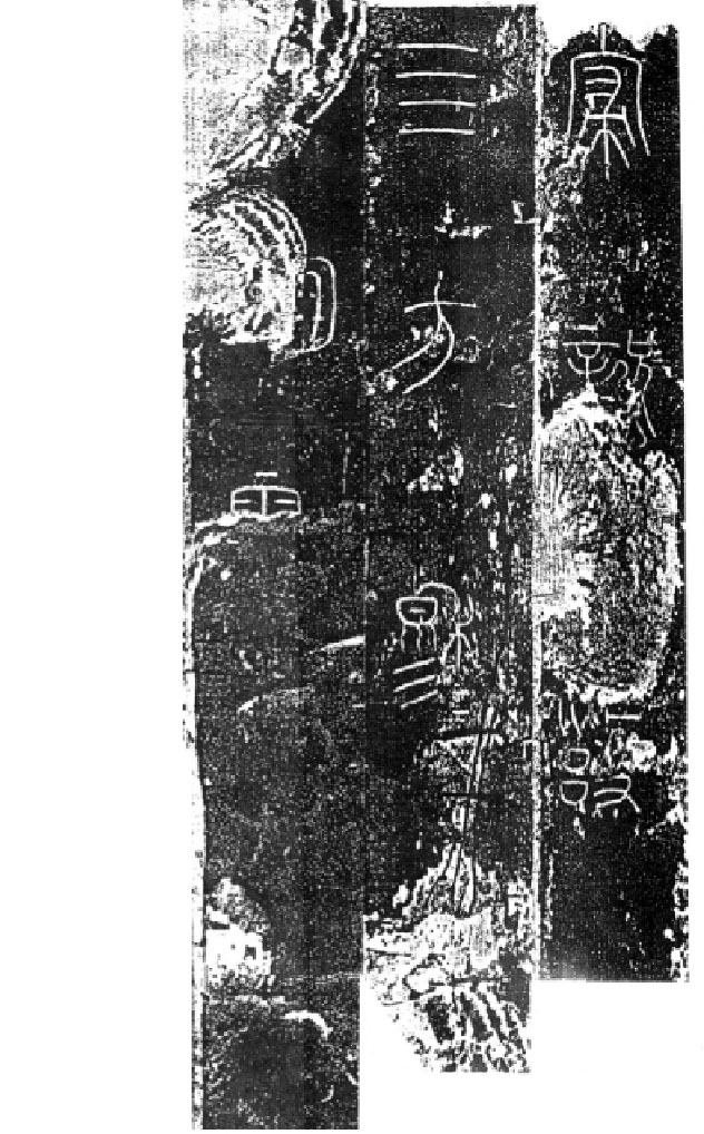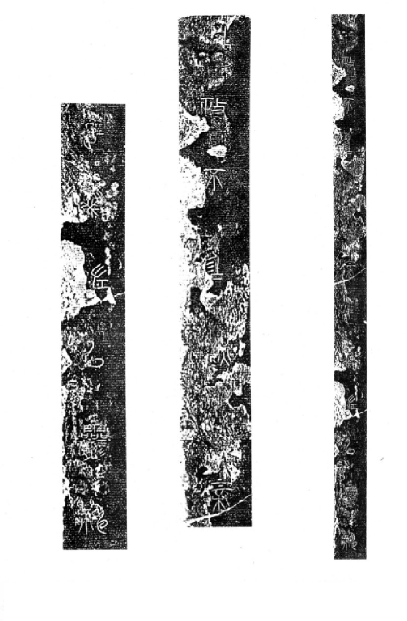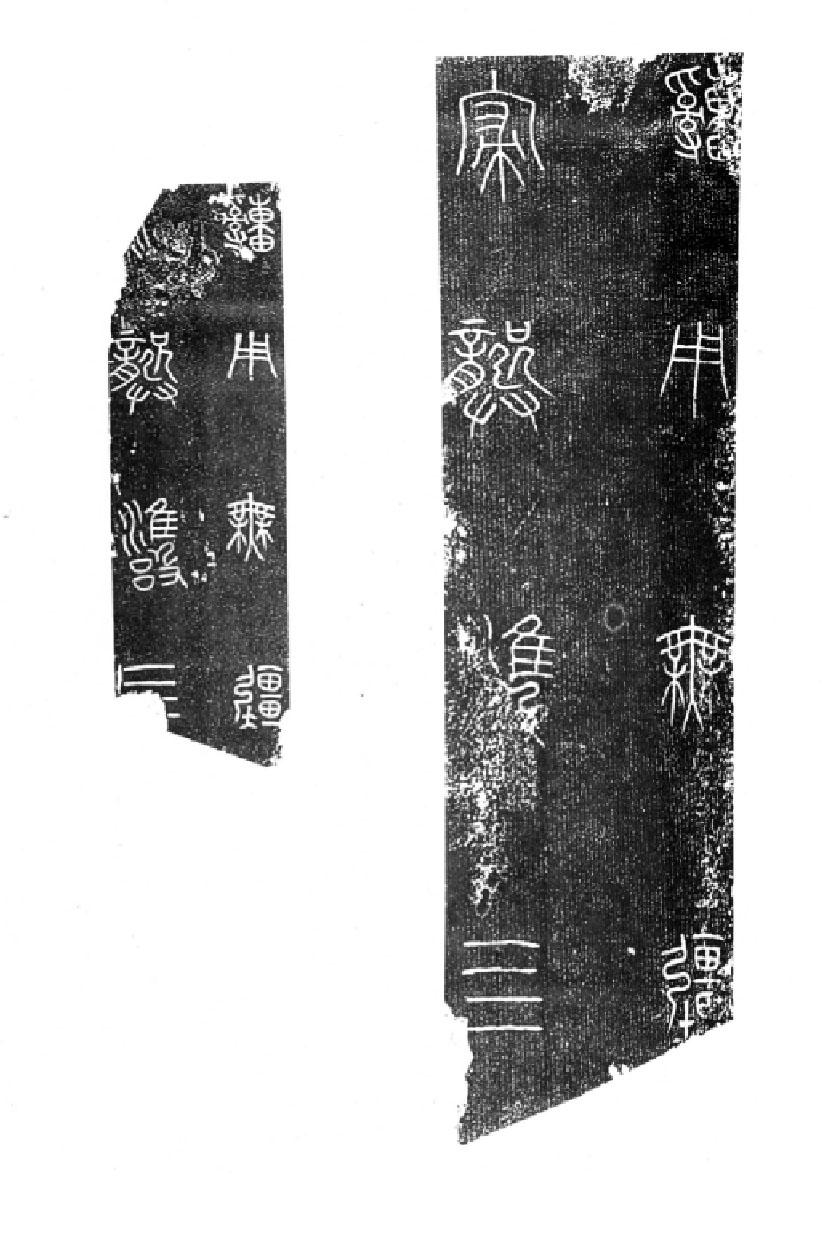 注:这是石磬铭文中最长的一条。大意是:各种乐器演奏出悠扬的音律,秦公欢宴周天子,得其认可,继承共、桓二公大业。秦人始祖颛顼(高阳)在天有灵,抱有四方得以静谧和平。