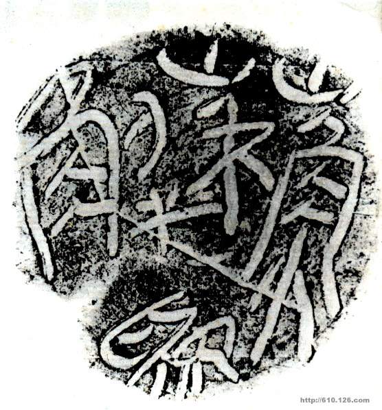 这是一帧极为珍贵和饶有趣味的陶刻文字拓片,陶盖文曰:“苏解为”。据近人陈邦怀先生考:“苏解乃陶工之姓名,物勒工名,是也。”他认为“为”当解释为“造”。秦人言 “为”汉人则言“造”,所以他考证《苏解为》陶盖应该是秦代之物。而不是汉代之物。