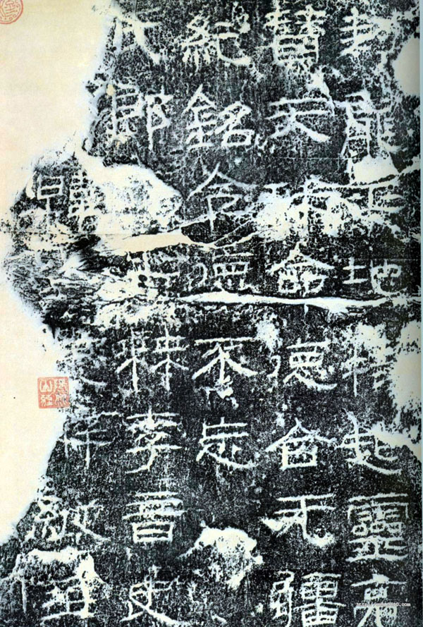 《封龙山颂》用笔圆润似《石门颂》,但外形方硬过之;笔划瘦硬险峻似《礼器碑》,但朴厚遒润过之。所以它兼有二者的美,又有自己独特的风格。