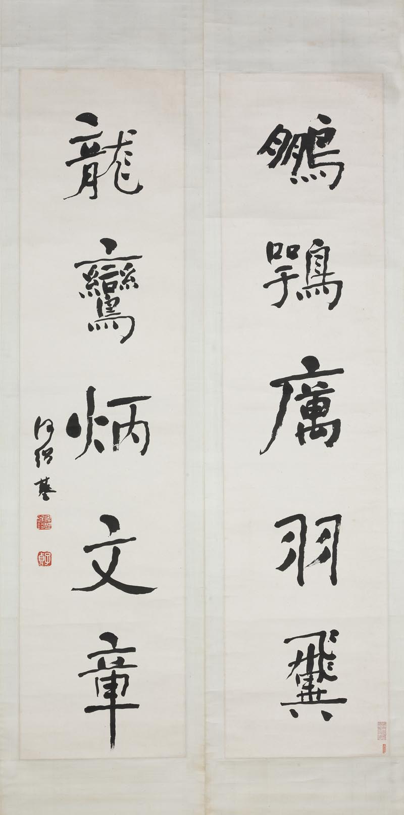 何绍基《楷书“鹏鹗龙鸾”五言联》 杭州书法高考培训班 2016-09-27 00:33 2,197 views 人阅读 0 条评论 何绍基《楷书“鹏鹗龙鸾”五言联》 何绍基《楷书“鹏鹗龙鸾”五言联》 释文:鹏鹗厉羽翼,龙鸾炳文章。何绍基。 【资料来源】湖南省博物馆“《还原大师》——何绍基的书法世界”学术专题展览 中国美院硕士开设的书法高考培训班(有需要了解的扫码加微信) 本文地址:http://shufa.yiriyitiao.cn/323.html 版权声明:本文为网友投稿发布,版权归原作者所有。本站小编: 杭州书法培训班 编辑。欢迎分享本文,转载请保留出处! 1人喜欢 分享: PREVIOUS:何绍基《楷书杜甫诗三首横披》 NEXT:冒襄《行草潇湘图跋》 纸本 南通博物苑藏 文章导航