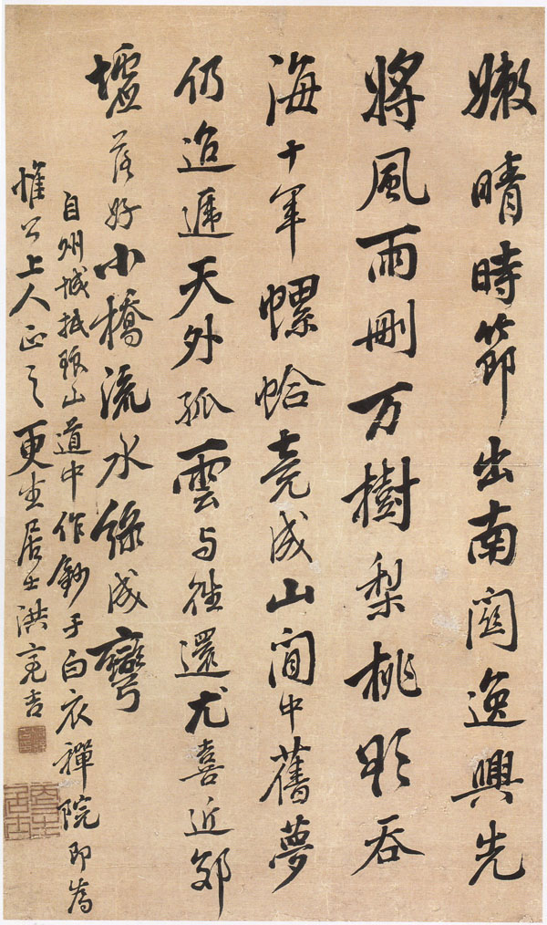 洪亮吉《行书七言律诗轴》南通博物苑藏 杭州书法高考培训班 2016-09-27 02:36 1,438 views 人阅读 0 条评论 洪亮吉《行书七言律诗轴》南通博物苑藏 洪亮吉《行书七言律诗轴》纸本行书 62×36cm 南通博物苑藏 释文: 【资料来源】:《南通博物苑文物精华》(文物出版社) 中国美院硕士开设的书法高考培训班(有需要了解的扫码加微信) 本文地址:http://shufa.yiriyitiao.cn/328.html 版权声明:本文为网友投稿发布,版权归原作者所有。本站小编: 杭州书法培训班 编辑。欢迎分享本文,转载请保留出处! 0人喜欢 分享: PREVIOUS:冒襄《行草潇湘图跋》 纸本 南通博物苑藏 NEXT:何绍基《行书扇面》 文章导航