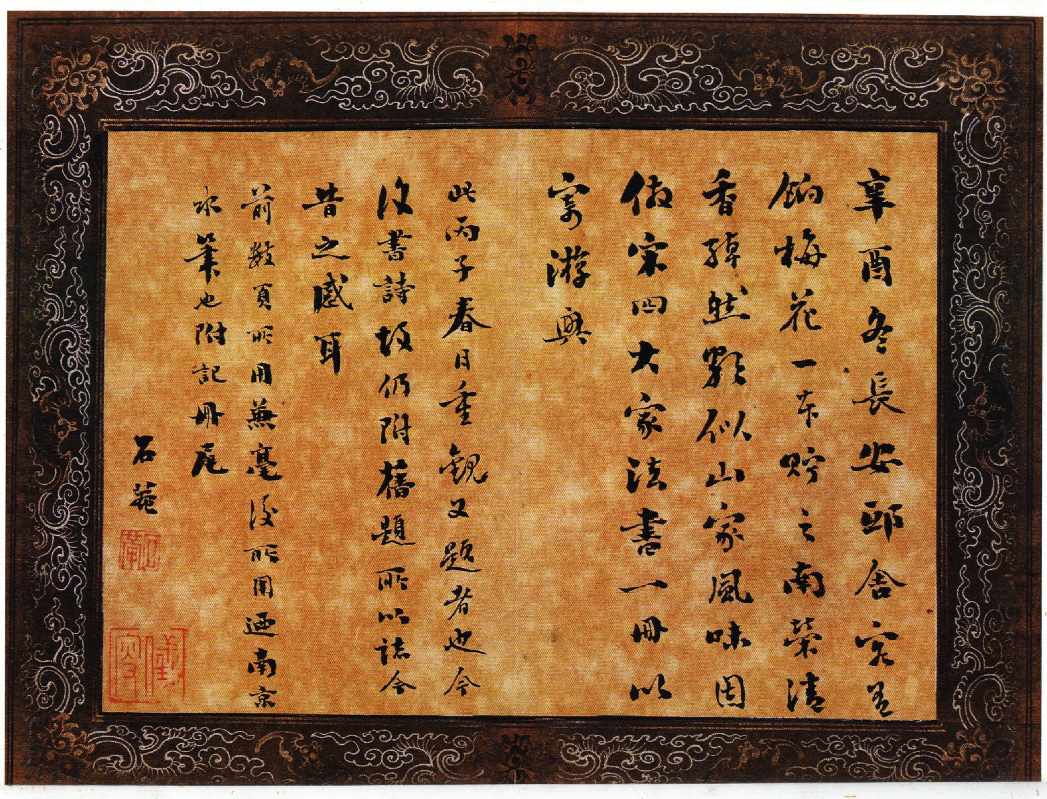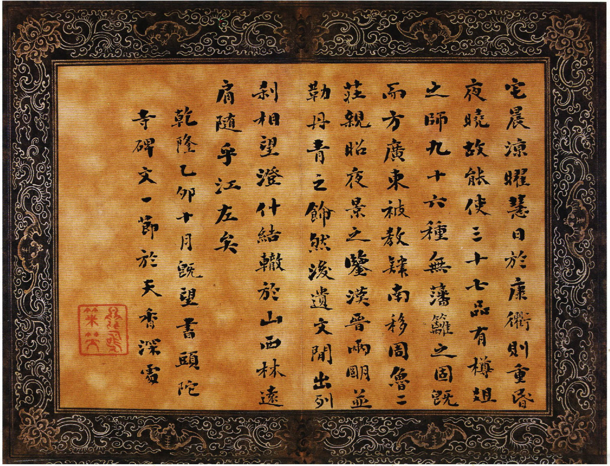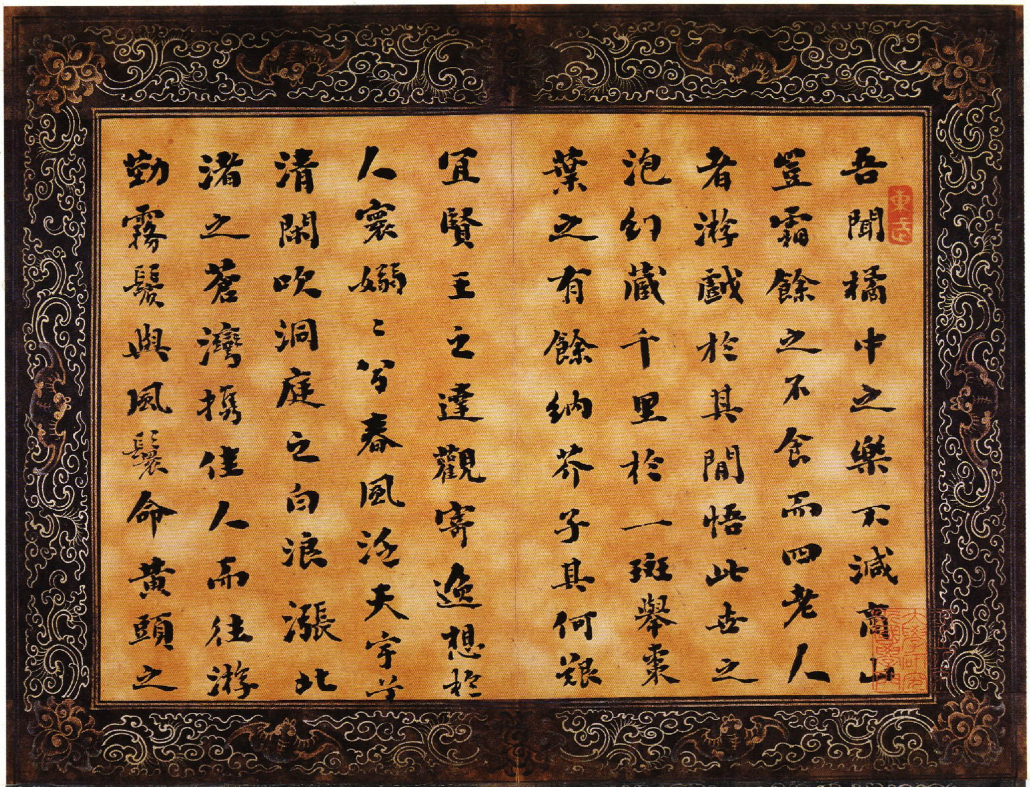 该小楷册为刘墉书录古文辞赋及自撰诗文,先后续书于乾隆乙亥、丙子间(1755——1756),为刘墉青壮年时期之作。书体肥壮而无臃肿之态,扁而无萎琐之习,黑而精神外溢,得雍容华贵气象。