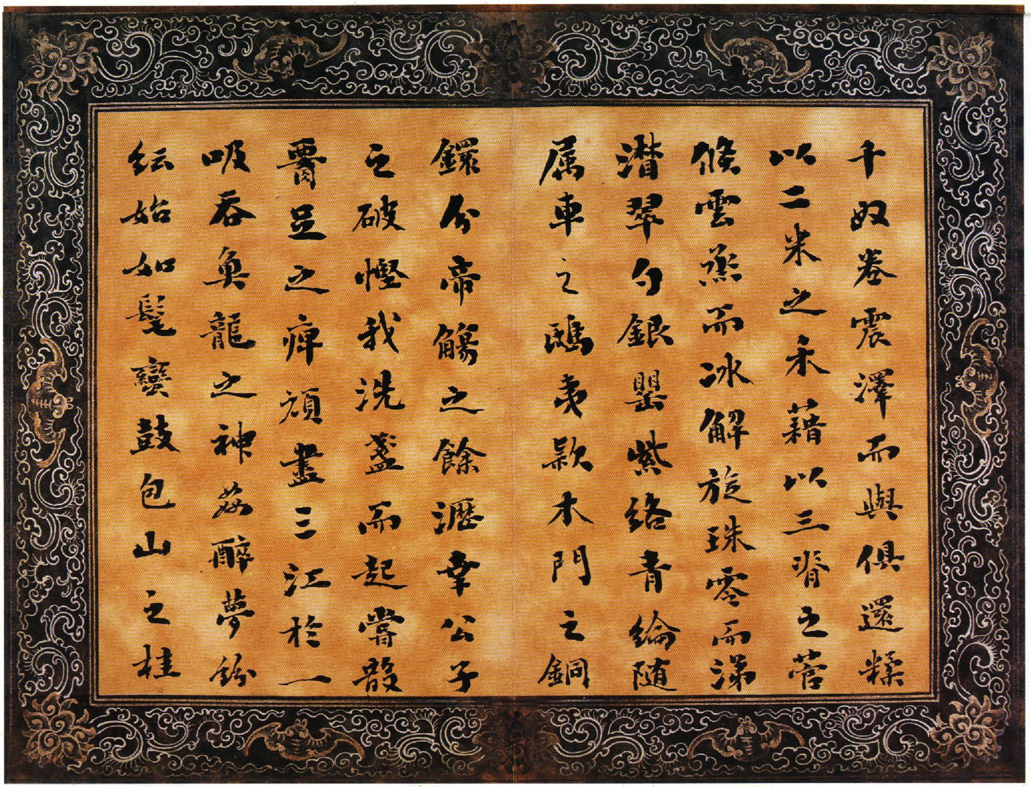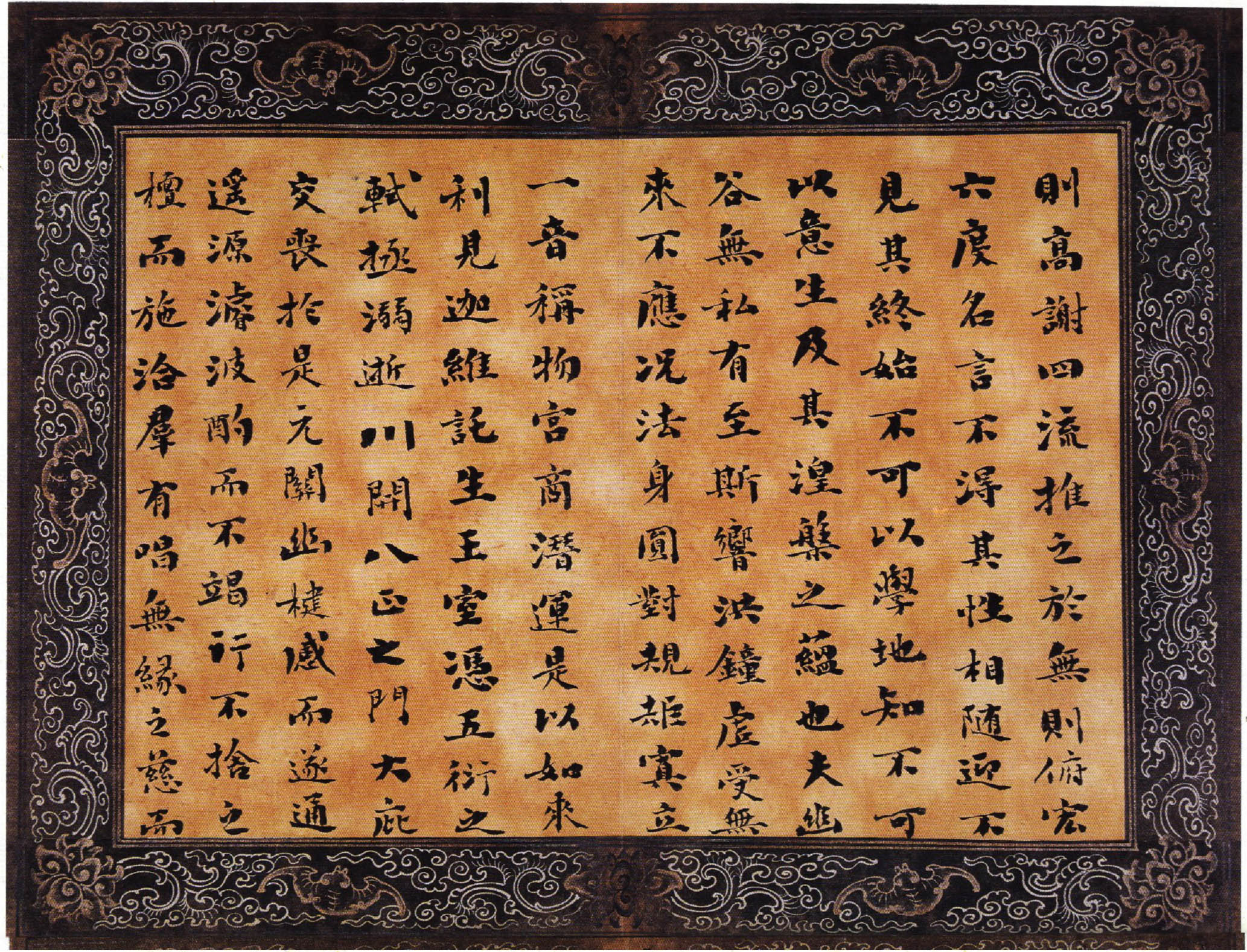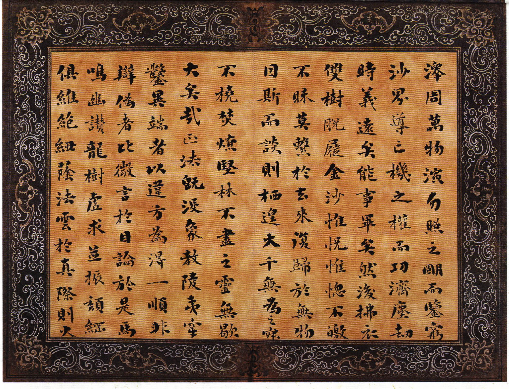 该小楷册为刘墉书录古文辞赋及自撰诗文,先后续书于乾隆乙亥、丙子间(1755——1756),为刘墉青壮年时期之作。书体肥壮而无臃肿之态,扁而无萎琐之习,黑而精神外溢,得雍容华贵气象。