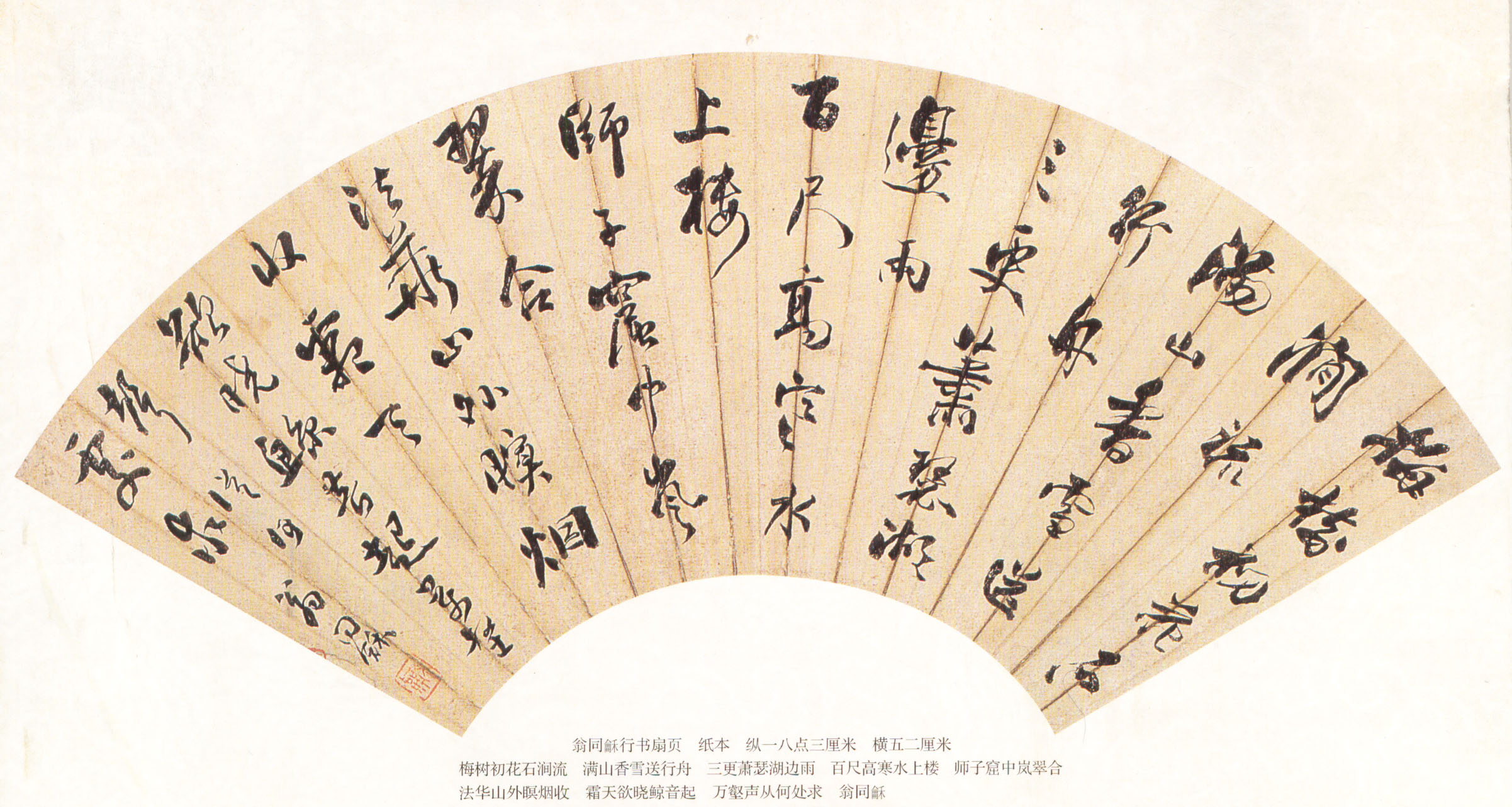 翁同龢《行书王士祯雨夜宿圣恩寺诗扇》 常熟博物馆藏