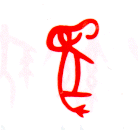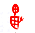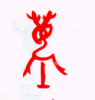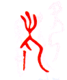 象一个人两手拿着犁牛的尾巴或羽毛在跳舞的样子。