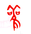 象一个长髮驼背弯腰又拿著拐杖的老人。