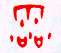 一个人张著嘴,象喝酒的样子,口中吐舌,表示吸吮,下面是酒坛子。