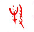 右侧符号是一个声符。上面的部份是凤冠,下面一大片是凤的长尾,经风一吹长尾翩翩。凤鸟是种神鸟。御风翱翔于四海之外。
