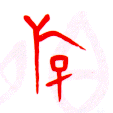 原是旗子的样子,表示风吹旗子的情形,中间的圈标示位置,这里假借为中间的中字。