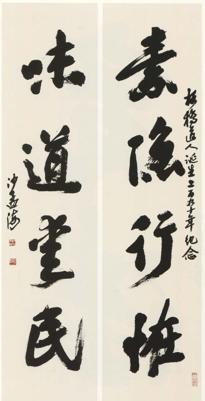 沙孟海《题兴化郑板桥纪念馆四言联》 134×33cm ×2 1983年